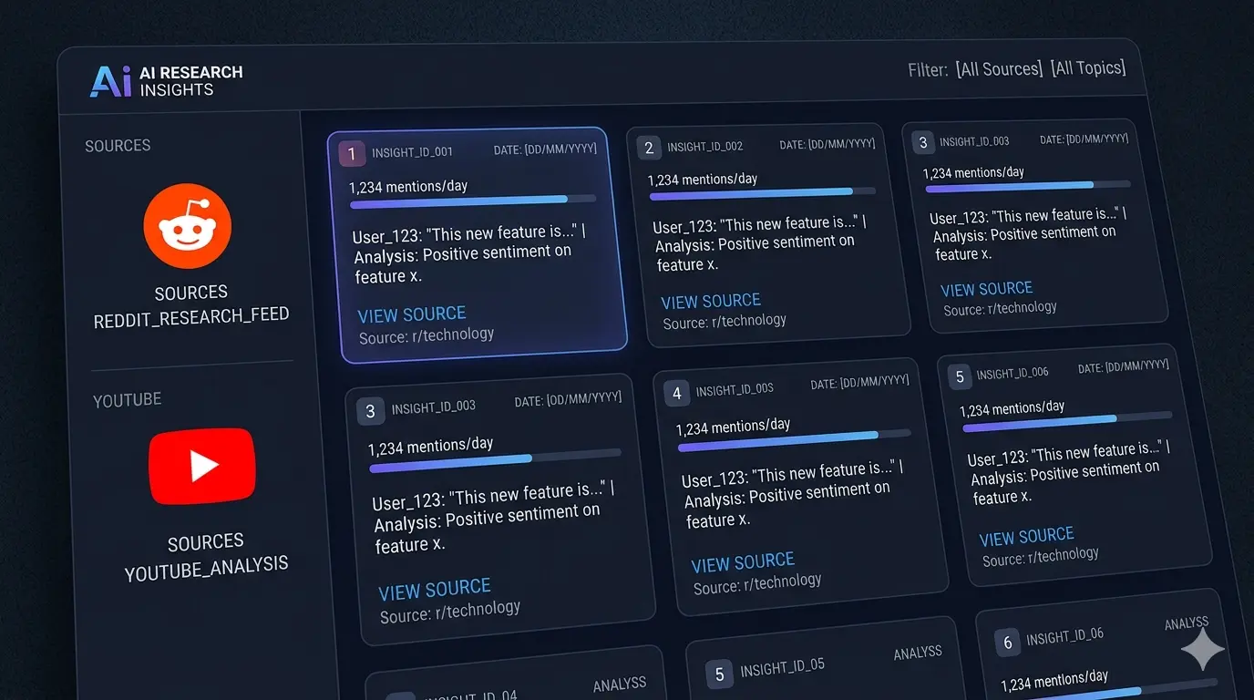 That last part matters. Every insight needs to be traceable. If you can't click through to the original Reddit thread, you can't verify the data, and you can't show it to a co-founder or investor as evidence.
