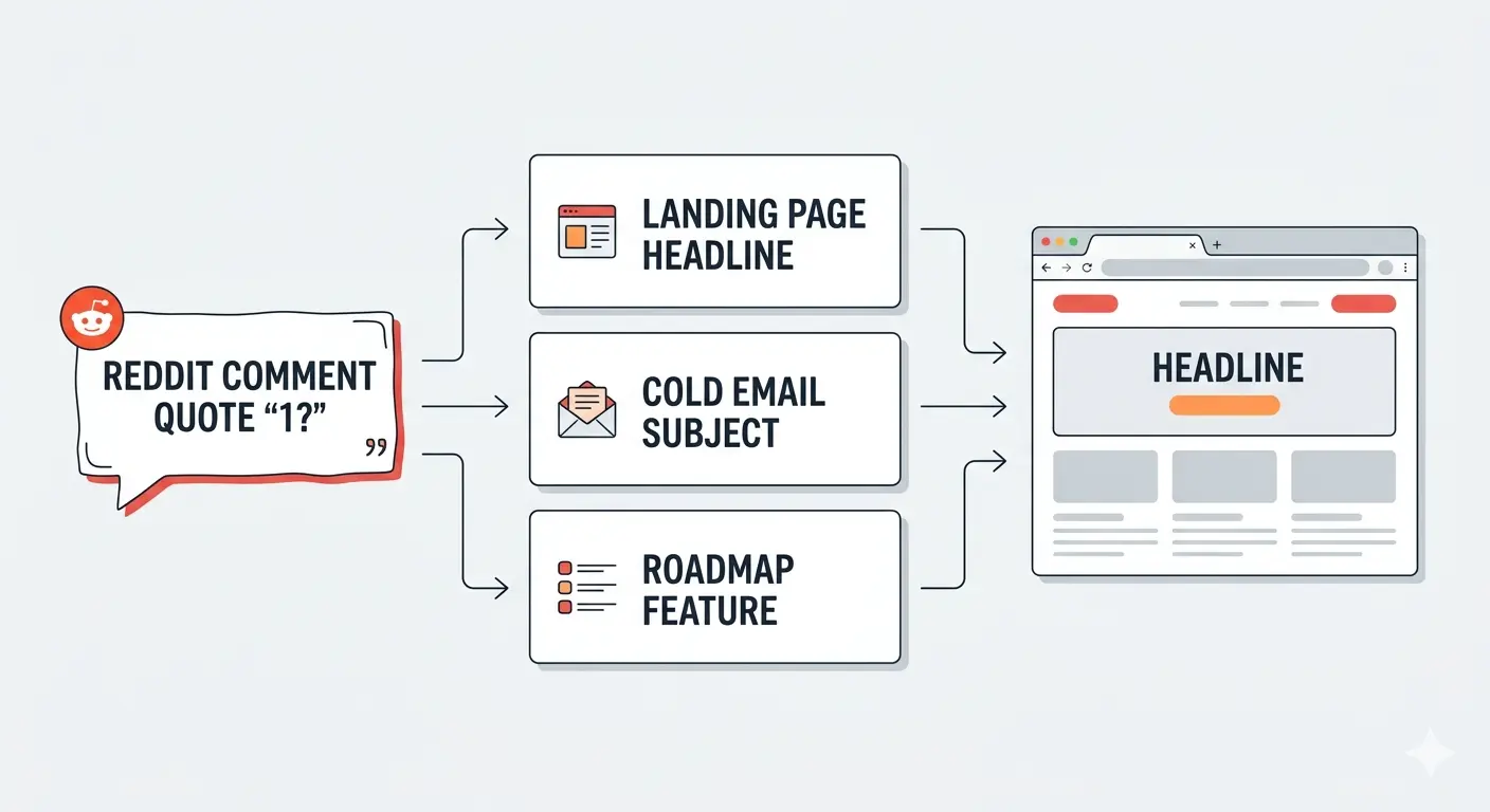 When someone writes "I've been manually opening 30 tabs every week just to keep up with Reddit," that's a headline: "Stop opening 30 tabs. Get Reddit insights in minutes." Your job is to take the most emotionally loaded phrasing and reflect it back at them.